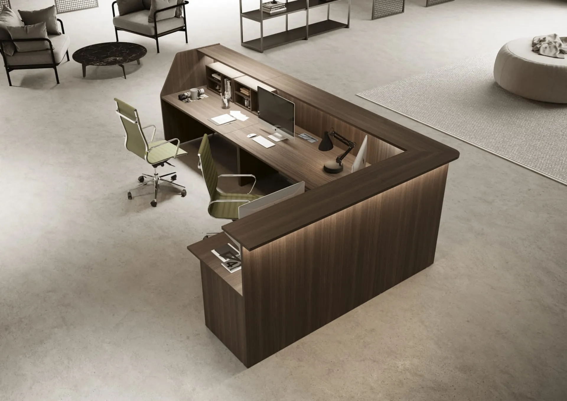 Se sei alla ricerca di banconi reception di Compir, clicca e scopri di più sul modello Reception Angolare in melaminico per uffici operativi e direzionali!