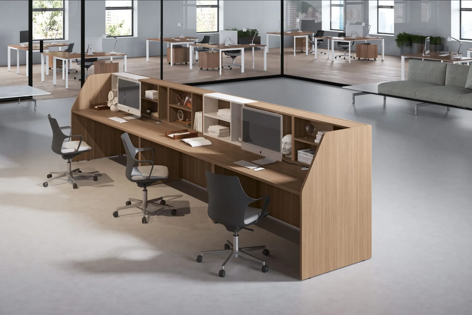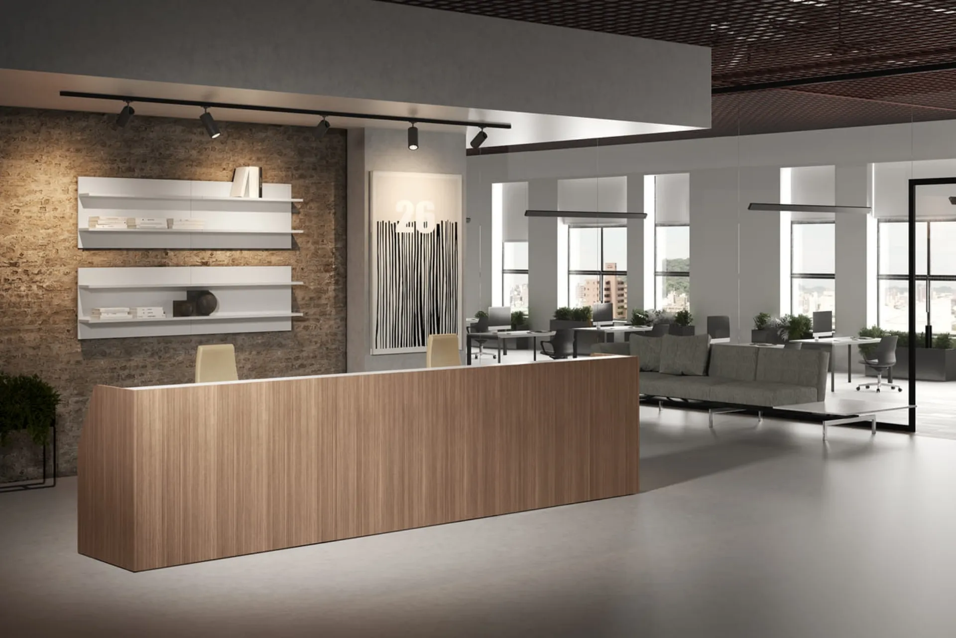 Se desideri completare gli spazi di lavoro, eccoti il modello Reception Noce Lineare di Compir tra diverse proposte di banconi reception.