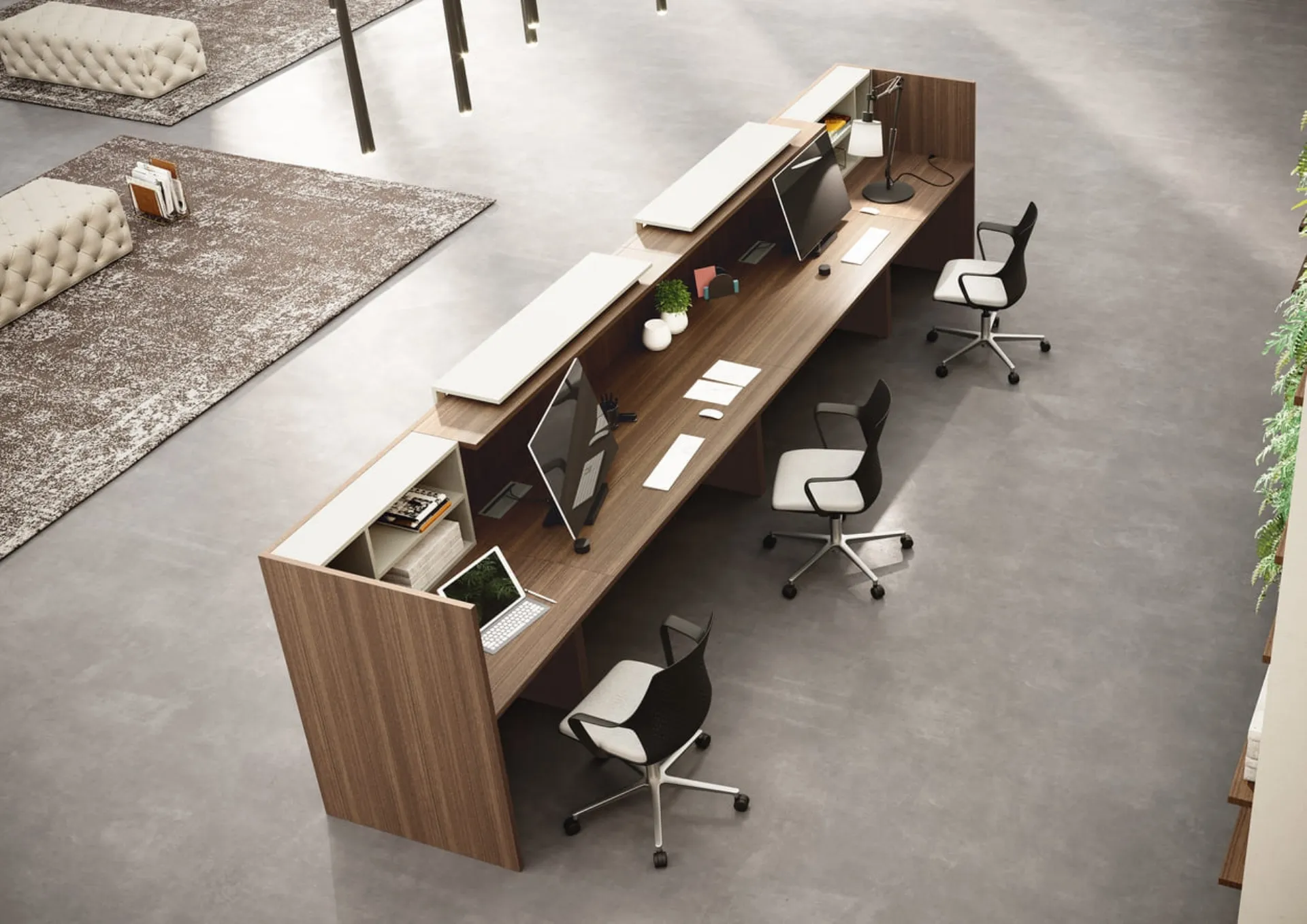 Se vuoi banconi reception di Compir, clicca e ottieni informazioni sul modello Reception Noce e Bianco in melaminico per gli spazi di lavoro!
