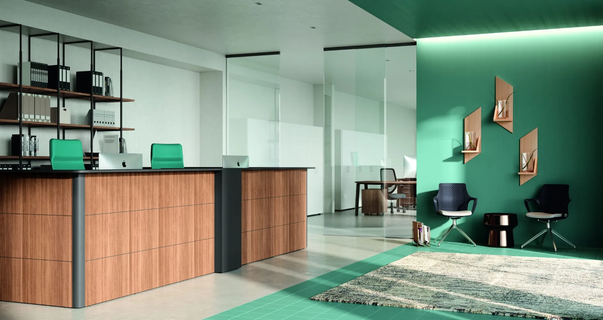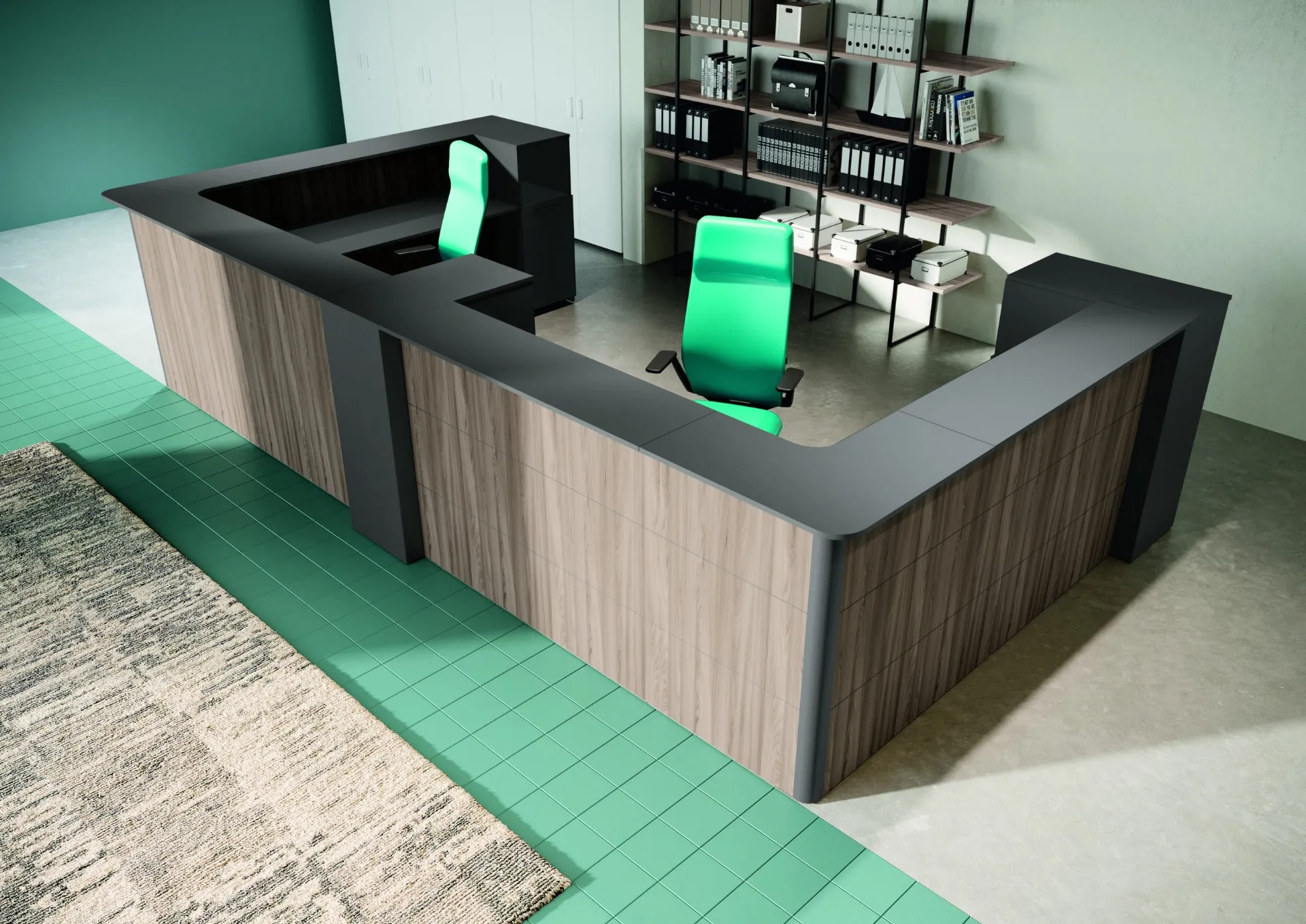 Se vuoi banconi reception di Compir, clicca e ottieni informazioni sul modello Reception Stratos in melaminico per il tuo ufficio!